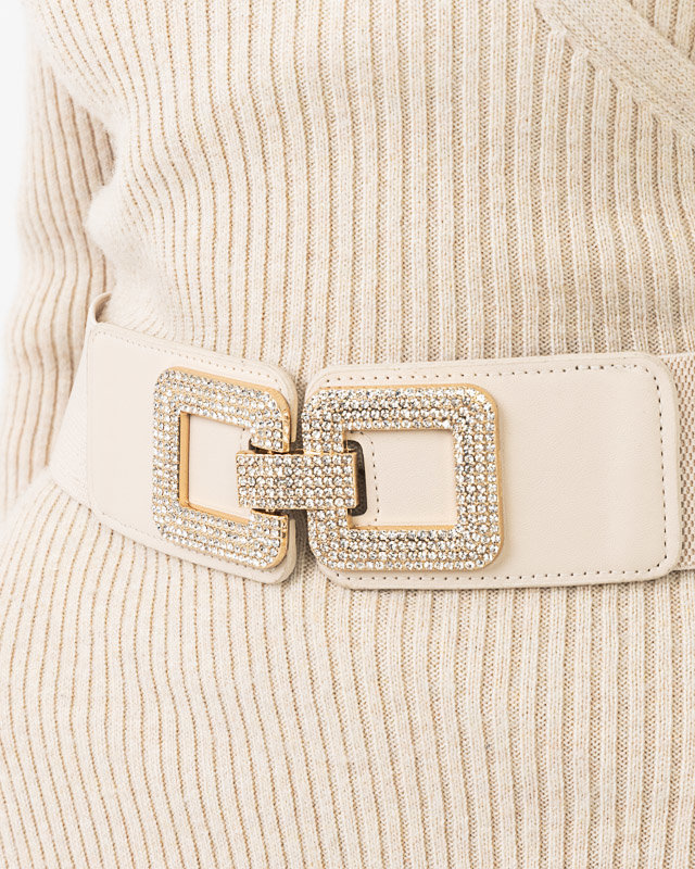 Beigefarbener elastischer Gürtel mit goldener Schnalle mit Zirkonia - Accessoires