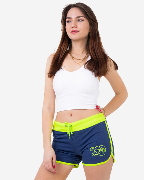 Gelb - Blaue Shorts mit LOVE-Plakette - Kleidung