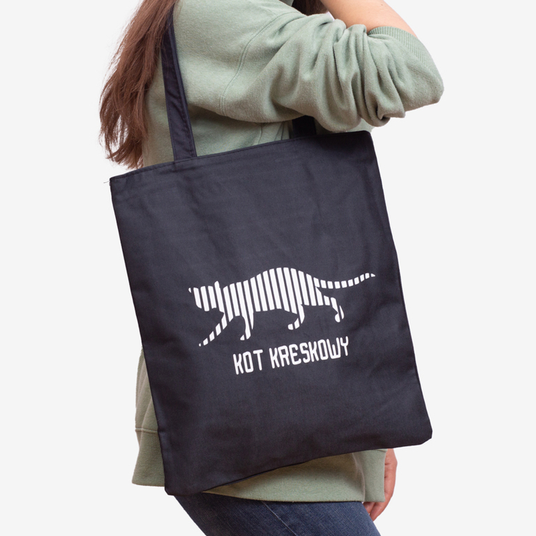 Schwarze Stofftasche mit Katzenschild und Aufdruck - Accessoires