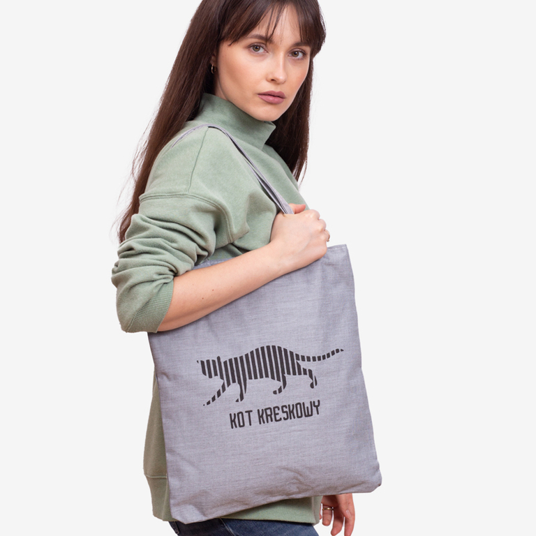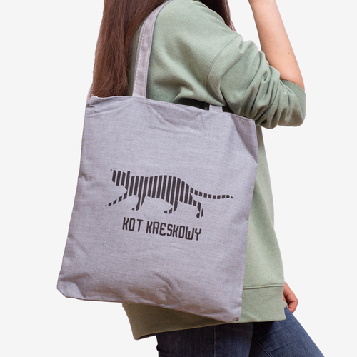 Graue Stofftasche mit Aufschrift und Aufdruck einer Katze - Accessoires