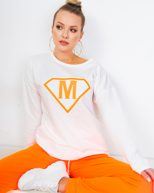 Sport-Trainingsanzug für Damen in Weiß und Orange mit Abzeichen - Kleidung