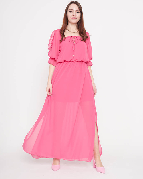 Spanisches Maxikleid in Fuchsia für Damen - Kleidung