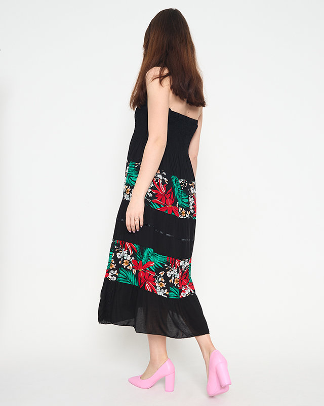 Schwarzes Midikleid mit Blumenmuster für Damen - Kleidung