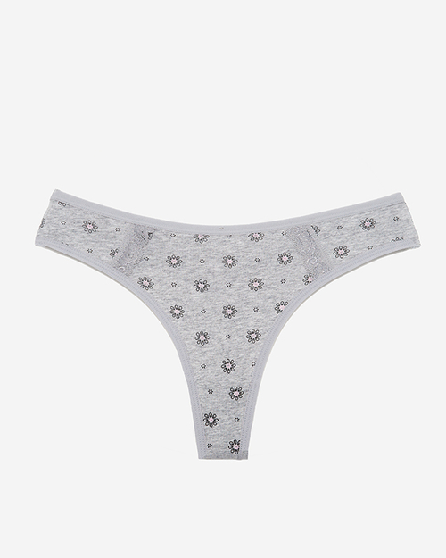 Grauer Damen-String aus Baumwolle mit Blumen - Unterwäsche