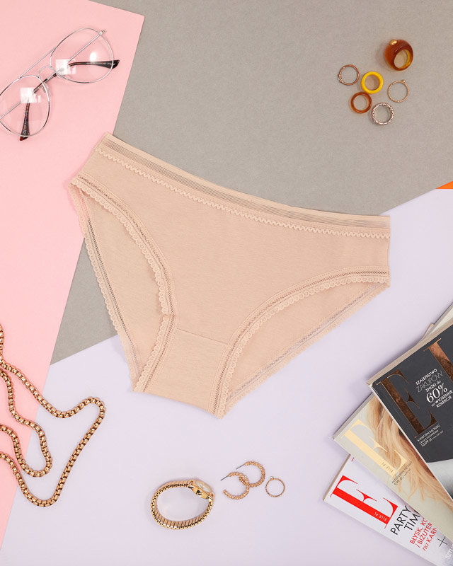 Beige Damenslips aus Baumwolle mit Spitze - Unterwäsche