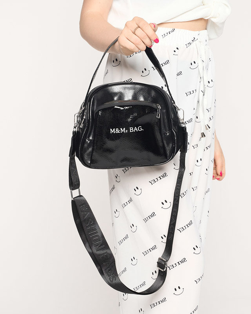 - Kleine Damenhandtasche mit Aufschrift aus ökologischem Leder Das Modell hat: - 1 Fach mit zwei Reißverschlüssen, - 1 Innentasche mit Reißverschluss, - 1 Außentasche mit Reißverschluss, - abnehmbarer, breiter, verstellbarer Riemen.