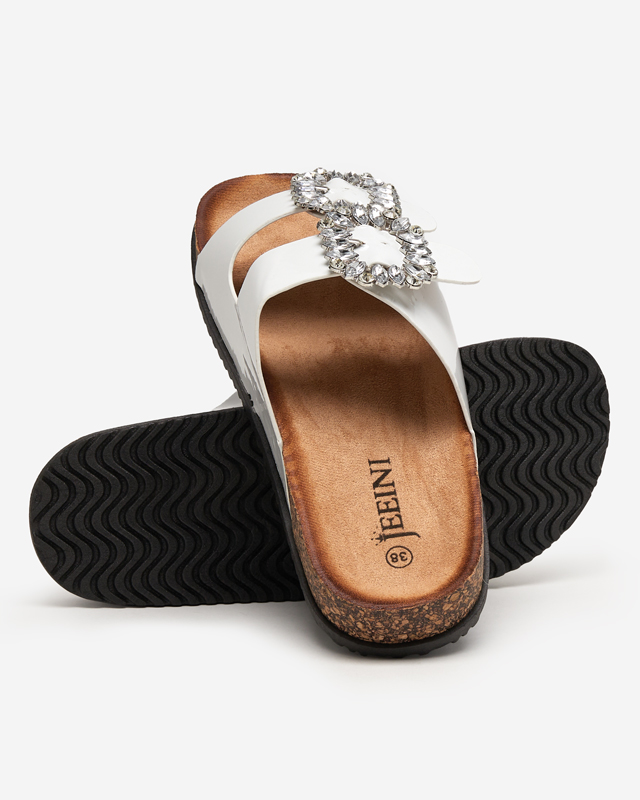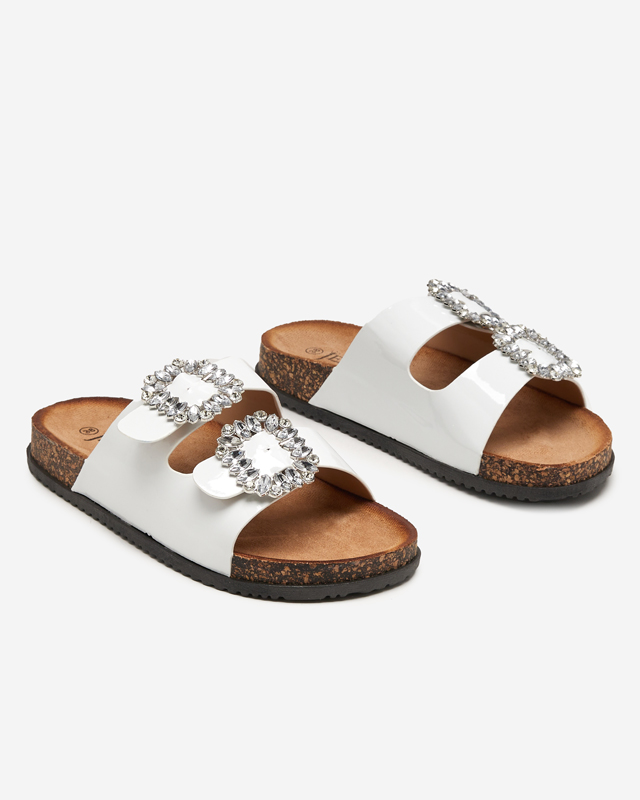 OUTLET Weiße Damenhausschuhe mit verzierten Schnallen Olimika - Schuhe