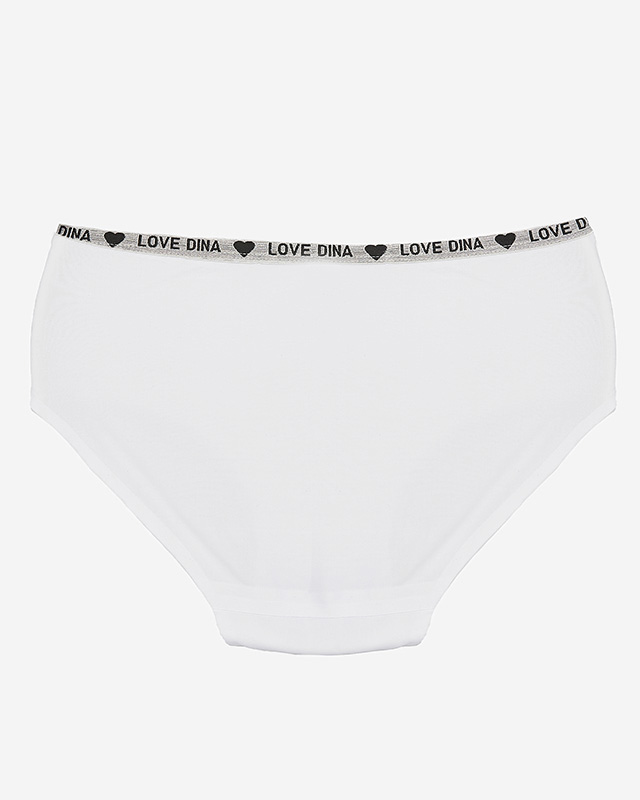 Weißer Damenslip mit Zierstreifen mit Aufschrift - Unterwäsche