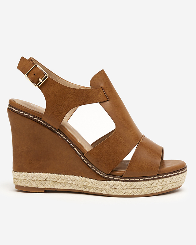 OUTLET Hellbraune Damensandalen auf hohem Keilabsatz Clack - Schuhe