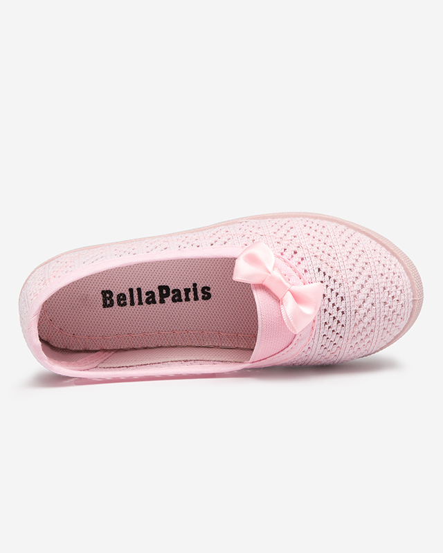 OUTLET Durchbrochene Turnschuhe für Mädchen in Hellrosa mit Apllo-Schleife - Schuhe