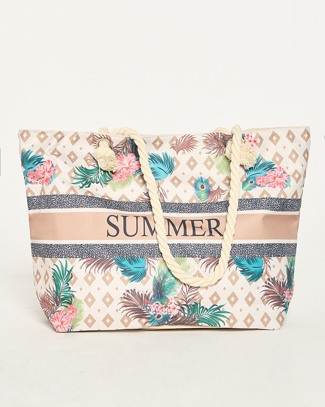 • Super stylische gemusterte Damen-Strandhandtasche aus Textilmaterial. Das Modell ist mit einem Reißverschluss befestigt, ein großes Fach innen. Großartig für den Urlaub, ich muss mich während Ihres Urlaubs in Ihren Koffer stecken!