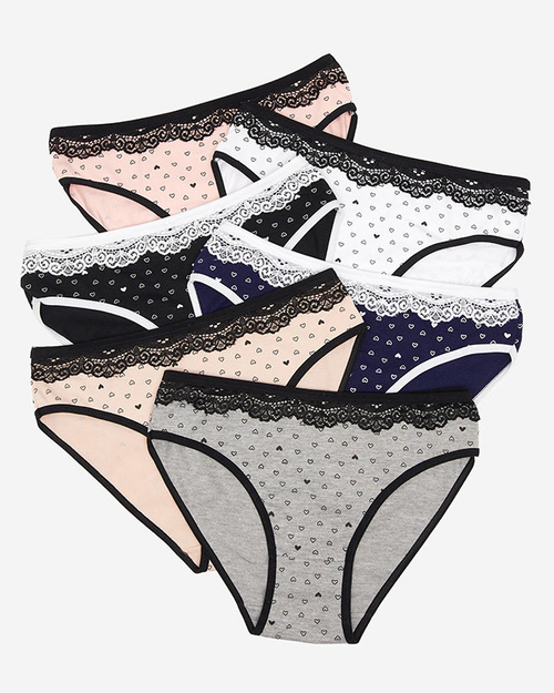 - Damenslip aus Baumwollstoff mit Herzen. Das Modell ist mit Spitze verziert, hat eine elastische Taille. Perfekte Unterwäsche für jeden Tag! HINWEIS: Messgenauigkeit (+/-) 1 cm.