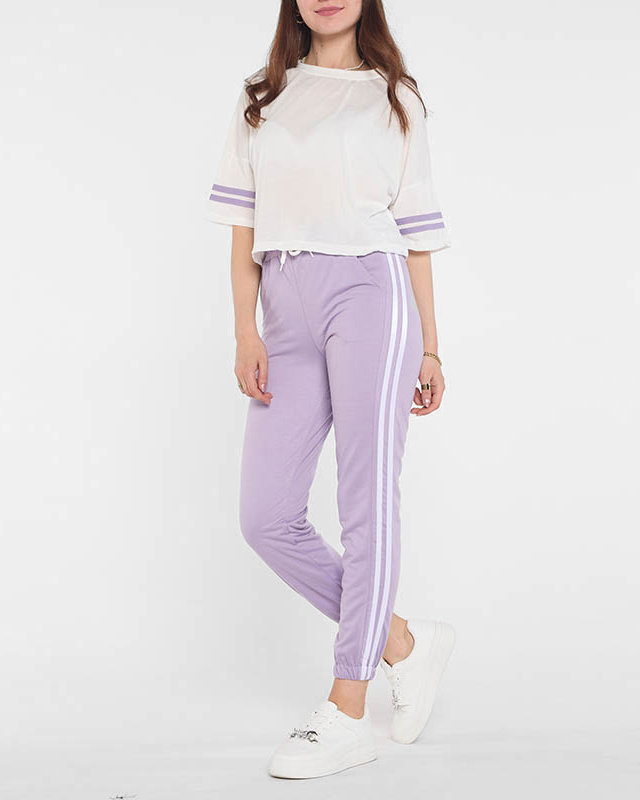 Violett-weißer Damen-Sport-Trainingsanzug mit Streifen - Kleidung
