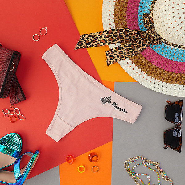 • Zartes einfarbiges Damen-Stringslip aus Baumwolle mit Aufschrift. Perfekte Unterwäsche für jeden Tag! HINWEIS: Messgenauigkeit (+/-) 1 cm.