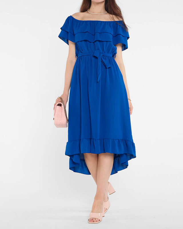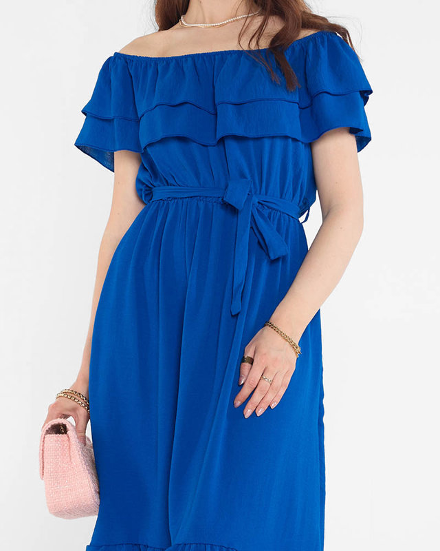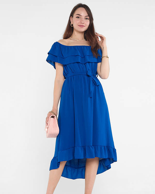 Kobaltblaues Damenkleid mit Rüschen - Kleidung