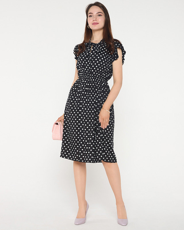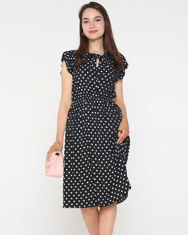 Schwarzes Damenkleid mit gepunktetem Ausschnitt zum Binden - Bekleidung