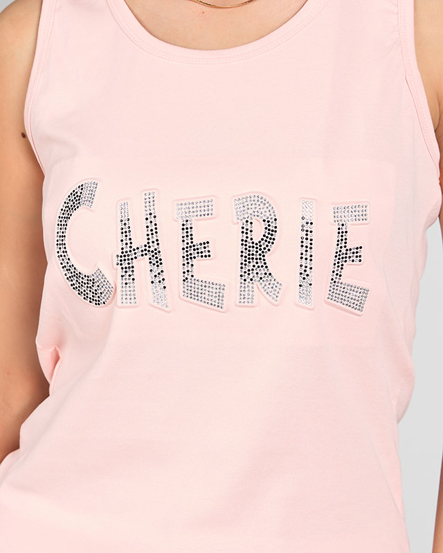 Hellrosa Damen-Top mit Schriftzug und Zirkonia - Bekleidung