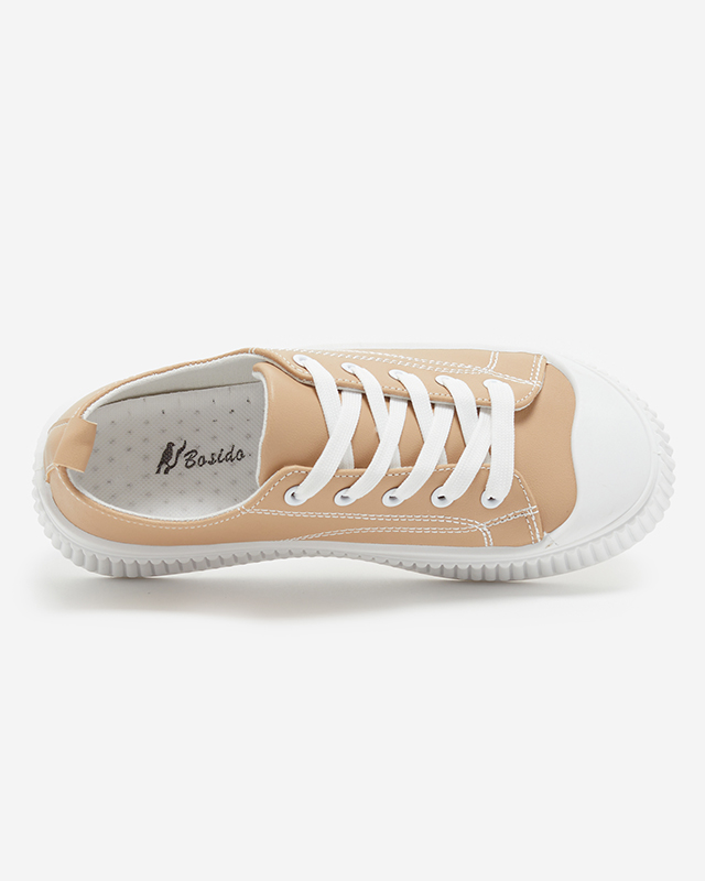- Fantastische Damen-Sportschuhe mit dicker Sohle aus Kunstleder. Das Modell mit Schnürung hat einen Stoffeinsatz. Perfekt für Jeans!