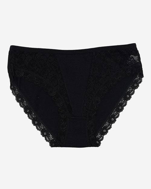 Schwarzer Damenslip aus Baumwolle mit Spitze - Unterwäsche