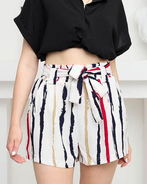 Weiß gestreifte Stoffshorts für Damen - Kleidung