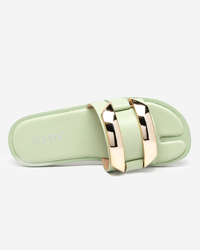 Grüne Damenhausschuhe mit großem Goldornament Kedino - Footwear