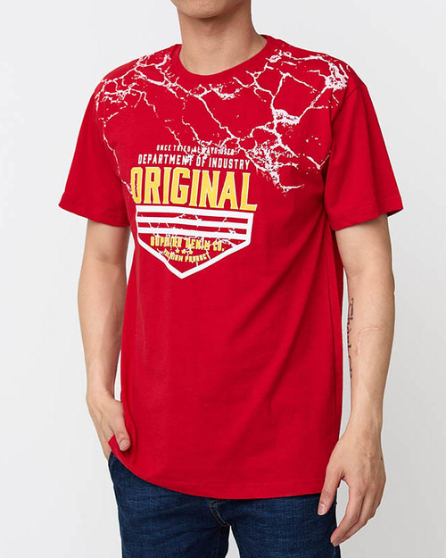 Rotes Herren-T-Shirt mit Aufdruck - Kleidung