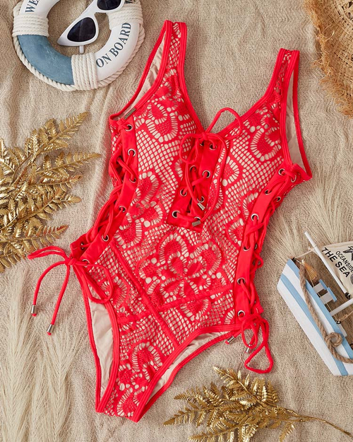 Einteiliger roter Spitzen-Badeanzug für Damen - Unterwäsche