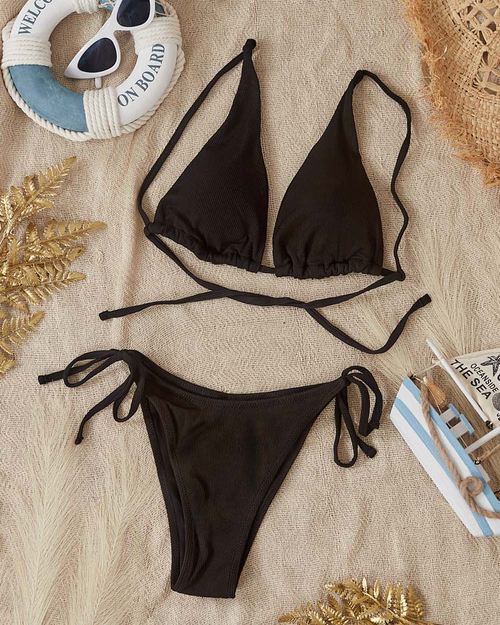 Schwarzer gerippter zweiteiliger Damen-Badeanzug - Unterwäsche