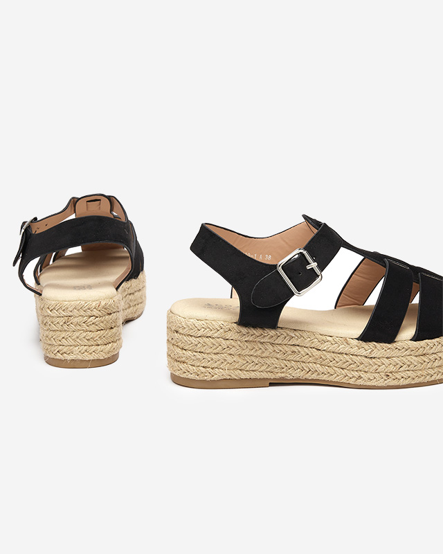 Damensandalen aus schwarzem Öko-Wildleder auf der Keniso-Plattform - Schuhe