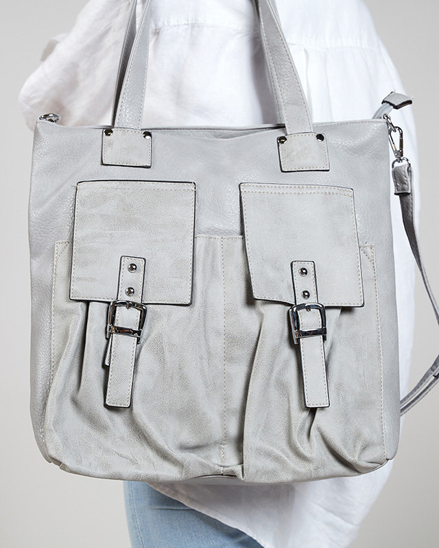 Graue Shopper-Tasche für Damen mit dekorativen Taschen - Accessoires