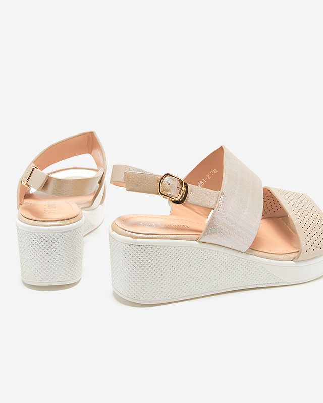Braune und goldene Damensandalen mit Keilabsatz Velmisa - Schuhe