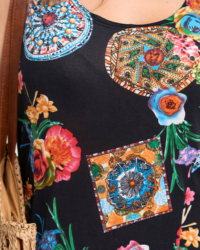 Gemustertes schwarzes kurzes Damenkleid - Kleidung