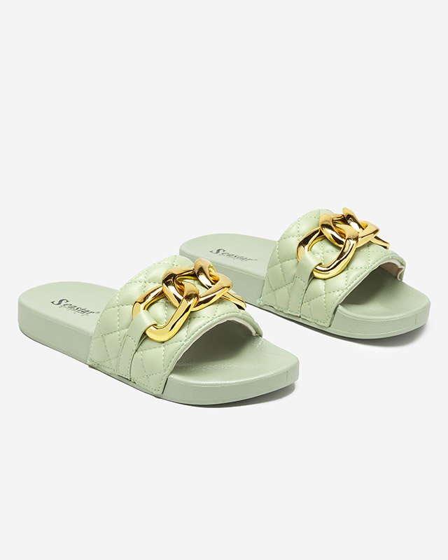 Grüne gesteppte Damenhausschuhe mit goldener Kette Eteris - Schuhe