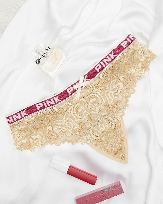 Tanga-Höschen aus beigefarbener Spitze für Damen - Unterwäsche
