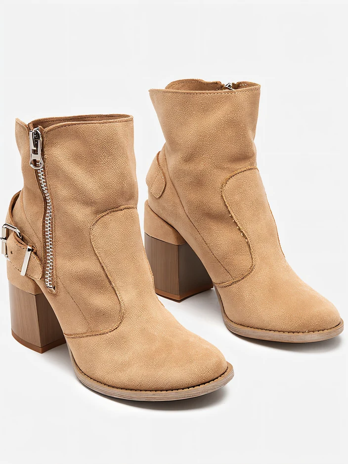 Hellbraune Öko-Wildleder-Damenstiefel auf dem Pfosten Emrica - Schuhe