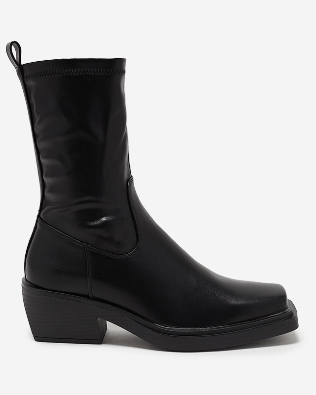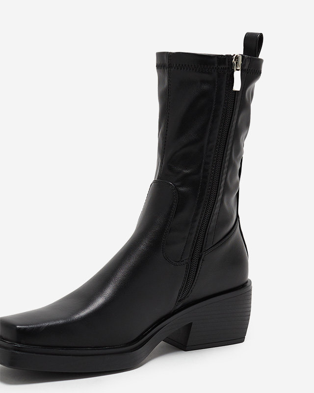 - Hohe Damenstiefel aus ökologischem Leder. Das Modell hat einen niedrigen Pfosten, einen seitlichen Reißverschluss und eine eckige Zehenpartie. Die Schuhe sind fein isoliert. DAMEN HOHE SCHUHE SCHWARZ SAFOG STIEFEL