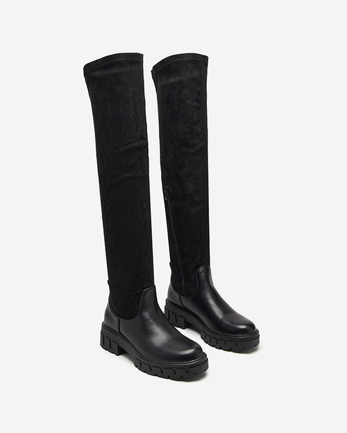 - Schuhe 12345678 Modischer Damenstiefel mit flachem Absatz aus einer Kombination von ökologischem Leder und Öko-Wildleder. Das Modell lässt sich anziehen und mit einem Reißverschluss bis zur Mitte der Wade schließen. Der Schaft ist nicht isoliert und hat k