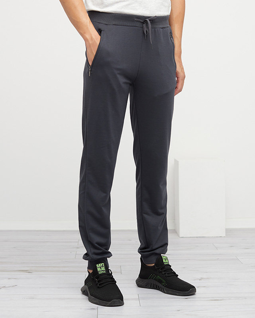 Dunkelgraue Herren-Jogginghose mit Reißverschlusstaschen - Kleidung