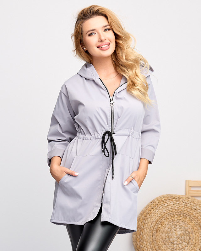 Hellgraue lange Windjacke mit gebundener Taille für Damen - Kleidung