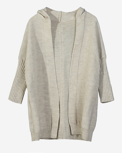 Beige lange Damen-Strickjacke mit Kapuze - Bekleidung