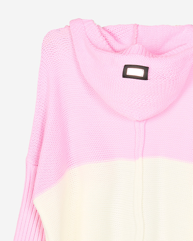 Langer Cape-Pullover für Damen in rosa-creme-grauer Farbe - Kleidung