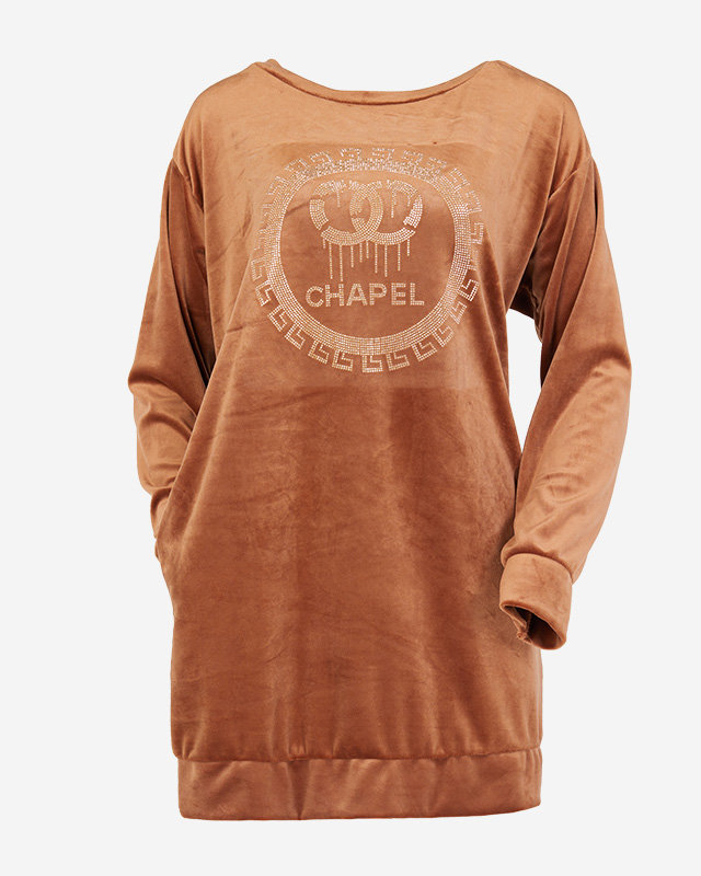 Lange braune Damentunika mit Zirkonia - Kleidung