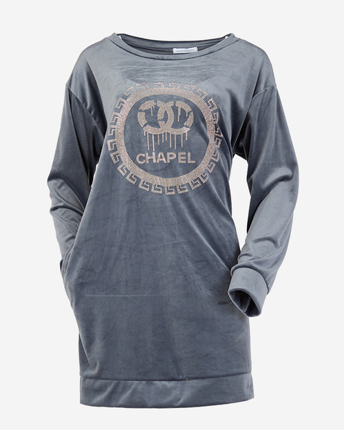 - Stylische lange Tunika für Damen aus weichem Stoff a'la Velours. Das Produkt ist mit Zirkonia verziert, hat lange Ärmel und zwei Eingrifftaschen. Ein Muss in der Garderobe jeder Frau! HINWEIS: Messgenauigkeit (+/-) 1 cm.