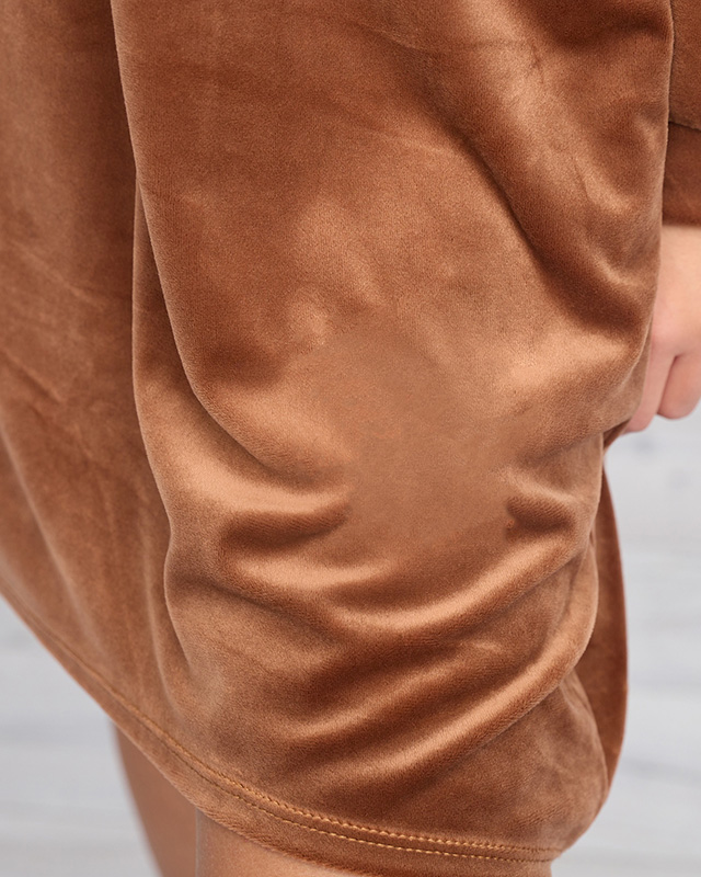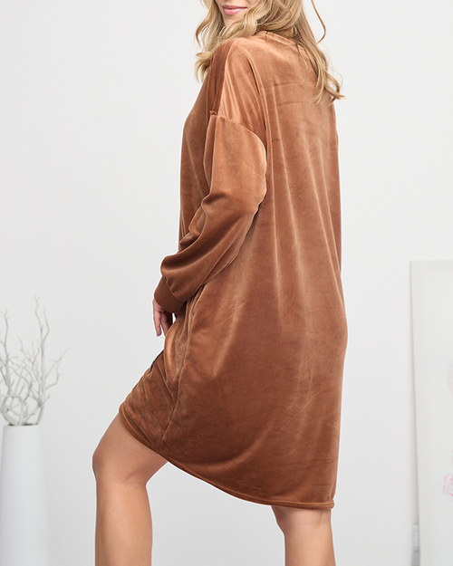- Modische Damen-Langtunika aus weichem Stoff a'la Velours. Das Produkt ist mit einem Abzeichen verziert, hat lange Ärmel und zwei Eingrifftaschen. Die perfekte Basis für viele Herbstoutfits! HINWEIS: Messgenauigkeit (+/-) 1 cm.