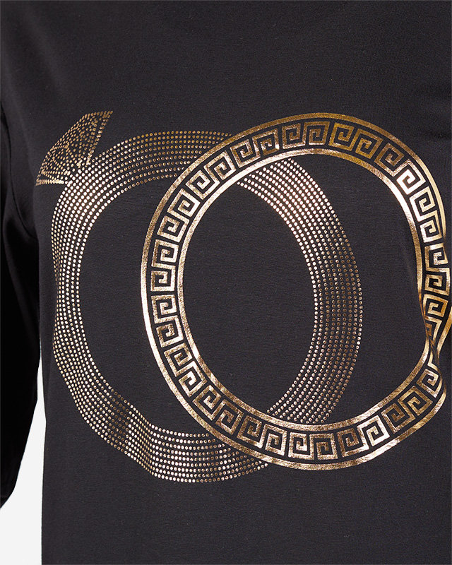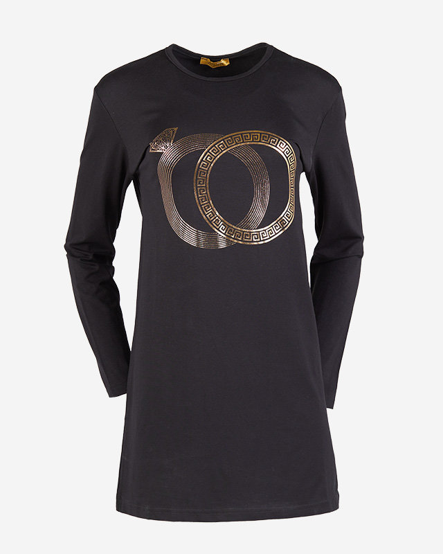 • Schöne lange Tunika für Damen aus elastischem Viskosestoff. Das Modell hat einen Rundhalsausschnitt und lange Ärmel. Das Produkt ist mit einem modischen Golddruck verziert. Eine tolle Ergänzung zu Ihren Freizeit-Outfits! HINWEIS: Messgenauigkeit (+/-) 1 c