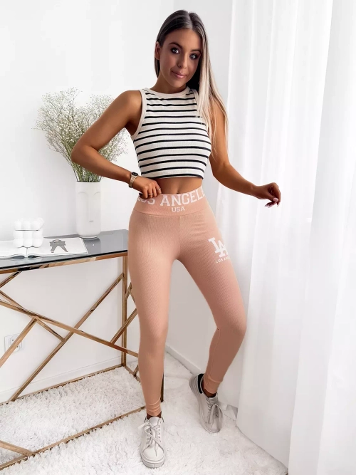 Gepuderte, gerippte Damenleggings mit Inschriften - Kleidung