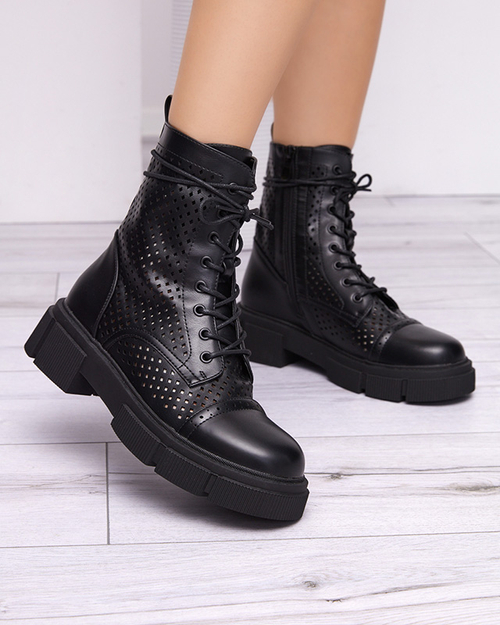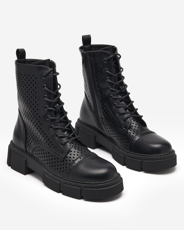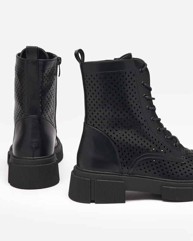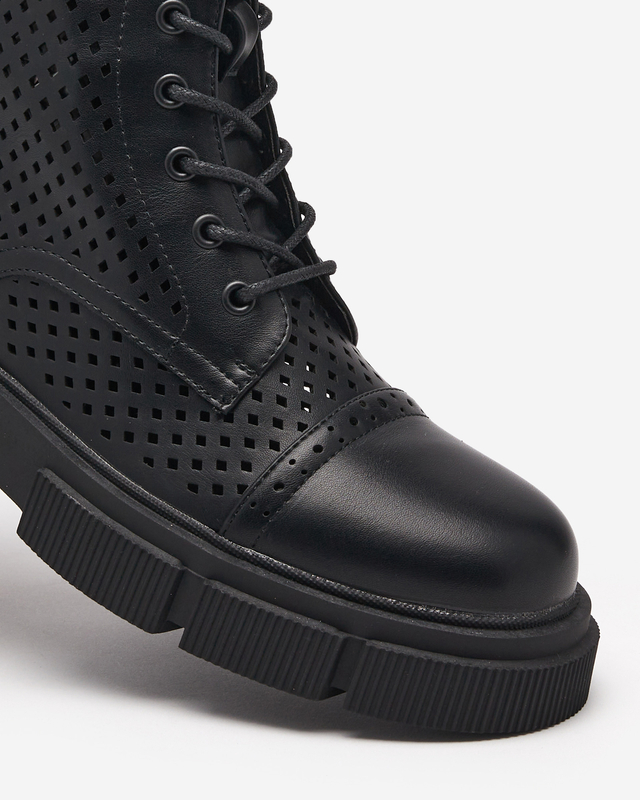 Schwarze durchbrochene Damenstiefeletten mit flachem Absatz Rolika - Footwear
