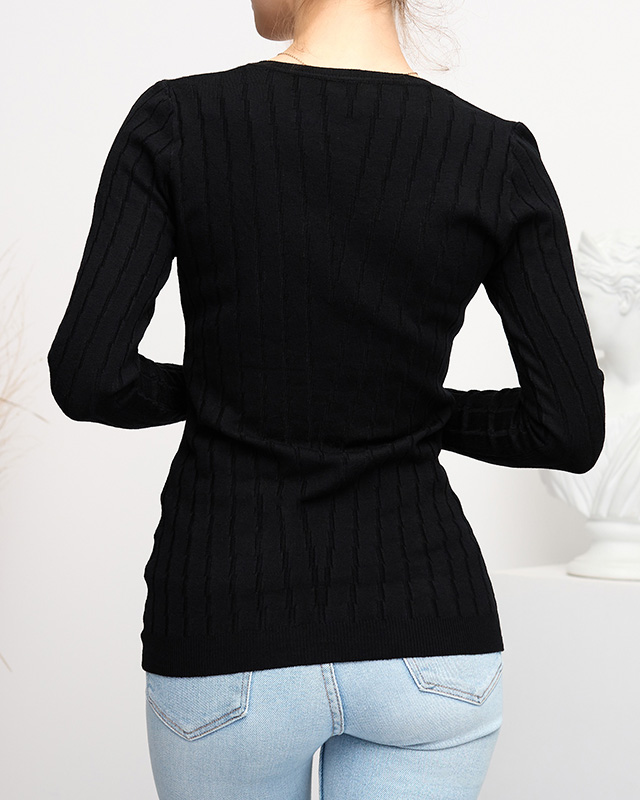 Schwarzer Damenpullover mit V-Ausschnitt - Kleidung