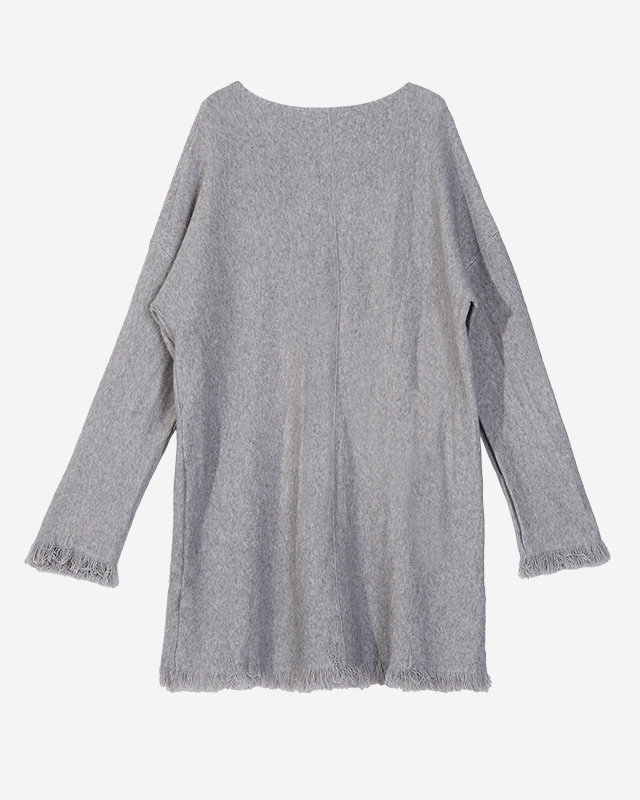 Grauer Damen-Tunika-Pullover mit Fransen - Kleidung