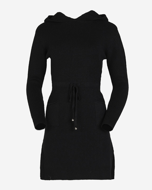 Schwarzes Damen-Pulloverkleid mit Kapuze - Kleidung